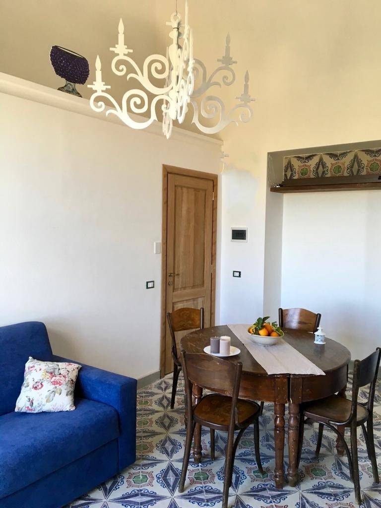 Immobiliare Spica propone in vendita appartamento totalmente ristrutturato all'interno di un antico Bagli siciliano dell'800. l'alloggio è composto da una cucina soggiorno con incantevole vista sul golfo , camera da letto e bagno.